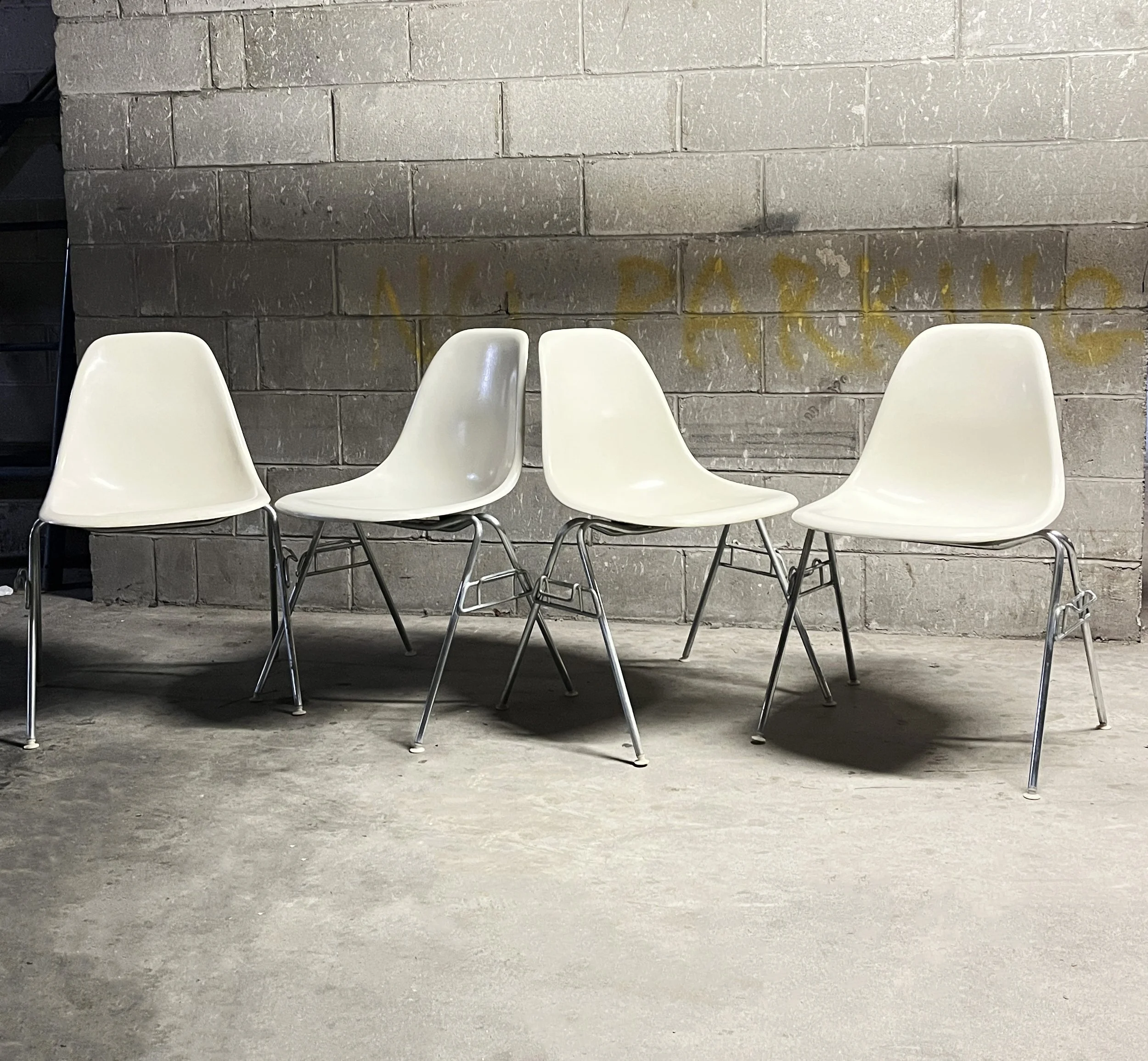 Set of 4 Eames for Herman Miller White Dss Fiberglass Chairs 1950s (Signed)